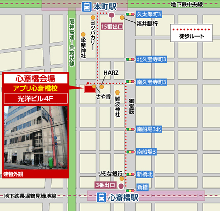 JR三宮 → 大阪 → 梅田(または四つ橋西梅田) 阪急・阪神三宮 → 梅田(または四つ橋西梅田) |